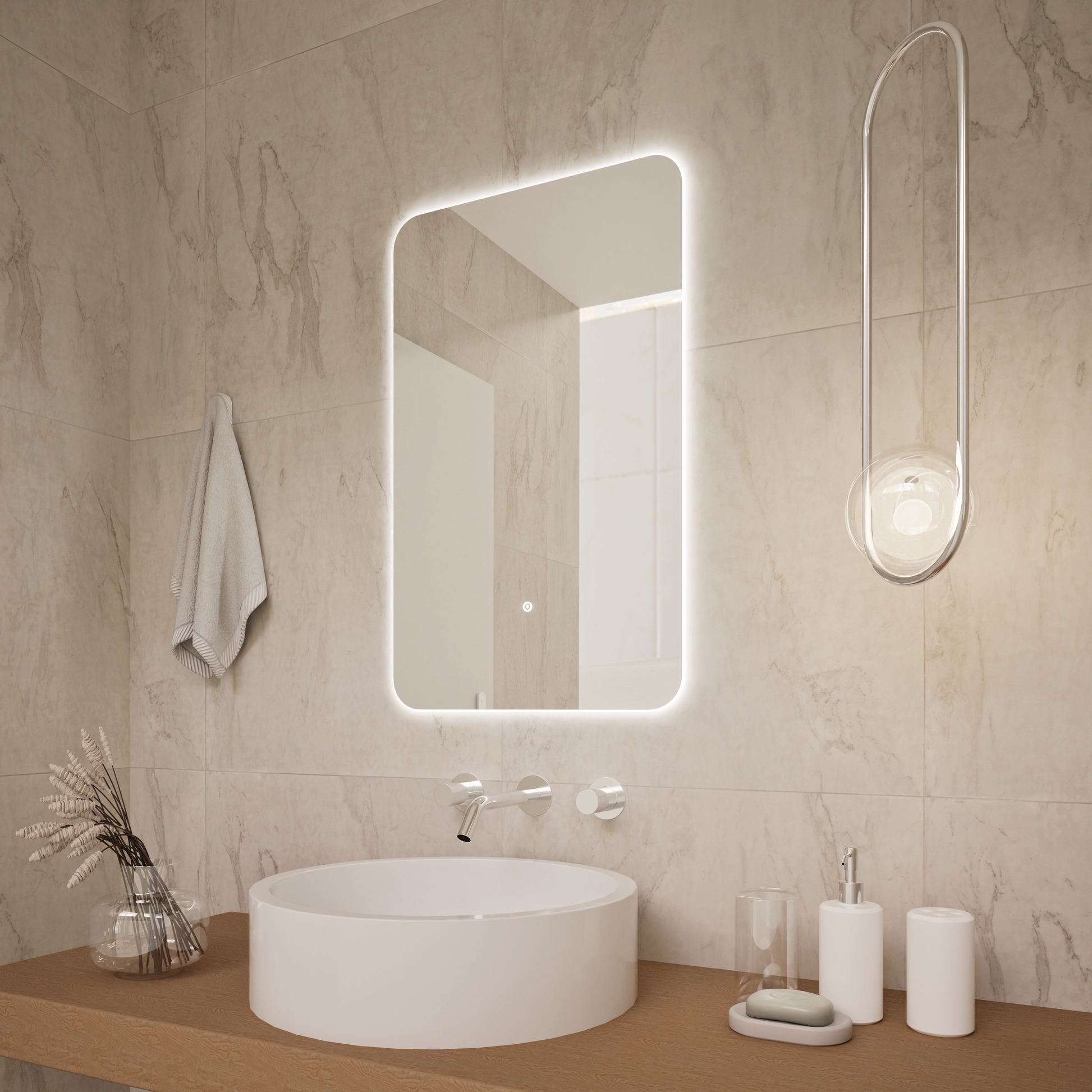 El espejo LED Vertice, de encendido táctil ON/OFF, es elegancia a precio asequible. Su luz intensa es ideal para espacios en los que necesitas una buena muy buena iluminación.