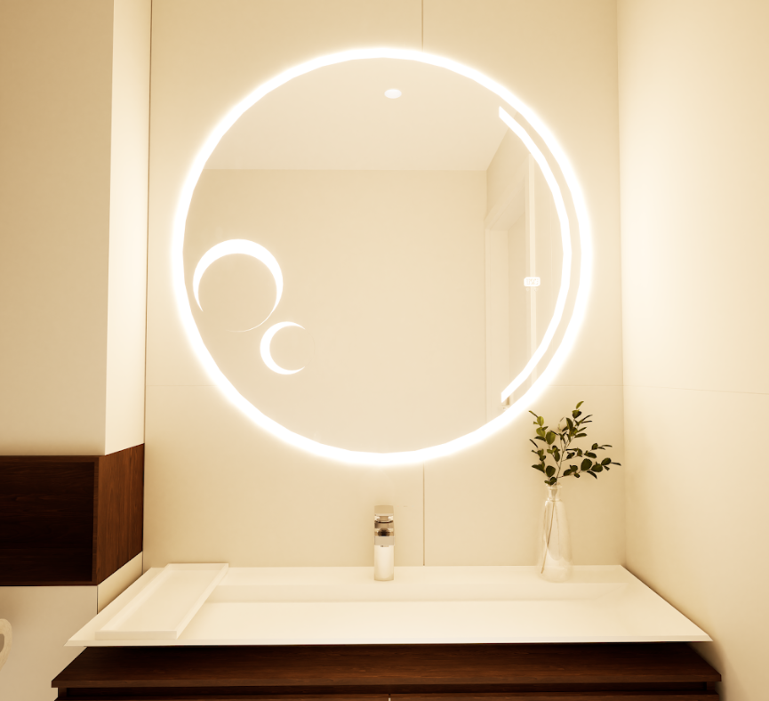 Funcionamiento manos libres, sin tocar el espejo, Parlantes Bluetooth que se conectan a tu celular, Tres temperaturas de Luz: Cálida, Neutra y Fría, Graduación de intensidad o potencia de la luz, Dos espejos de aumento a diferentes alturas: hombre y mujer, Desempañante, 240 LEDs por metro lineal en luz cálida y fría (3000 y 6000 Lumens), 480 LEDS por metro lineal en luz neutra (4000 Lúmenes).